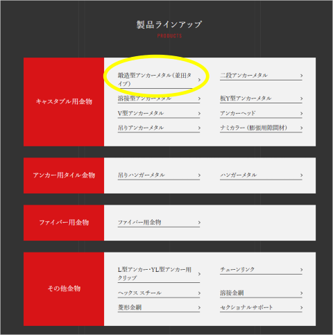 ここでは、代表して鍛造型アンカーメタルのウェブカタログのページまでの手順を図で案内させていただきます。
